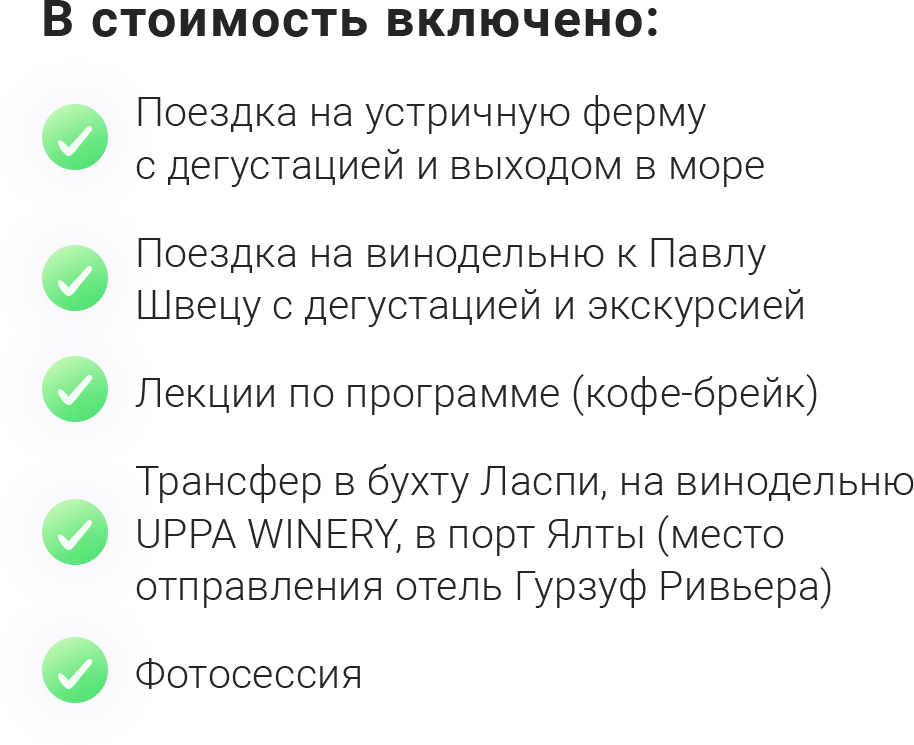 для нас будет готова дегустация черноморских устриц, добытых при вас и бокал холодного белого вина Alma Valley.
